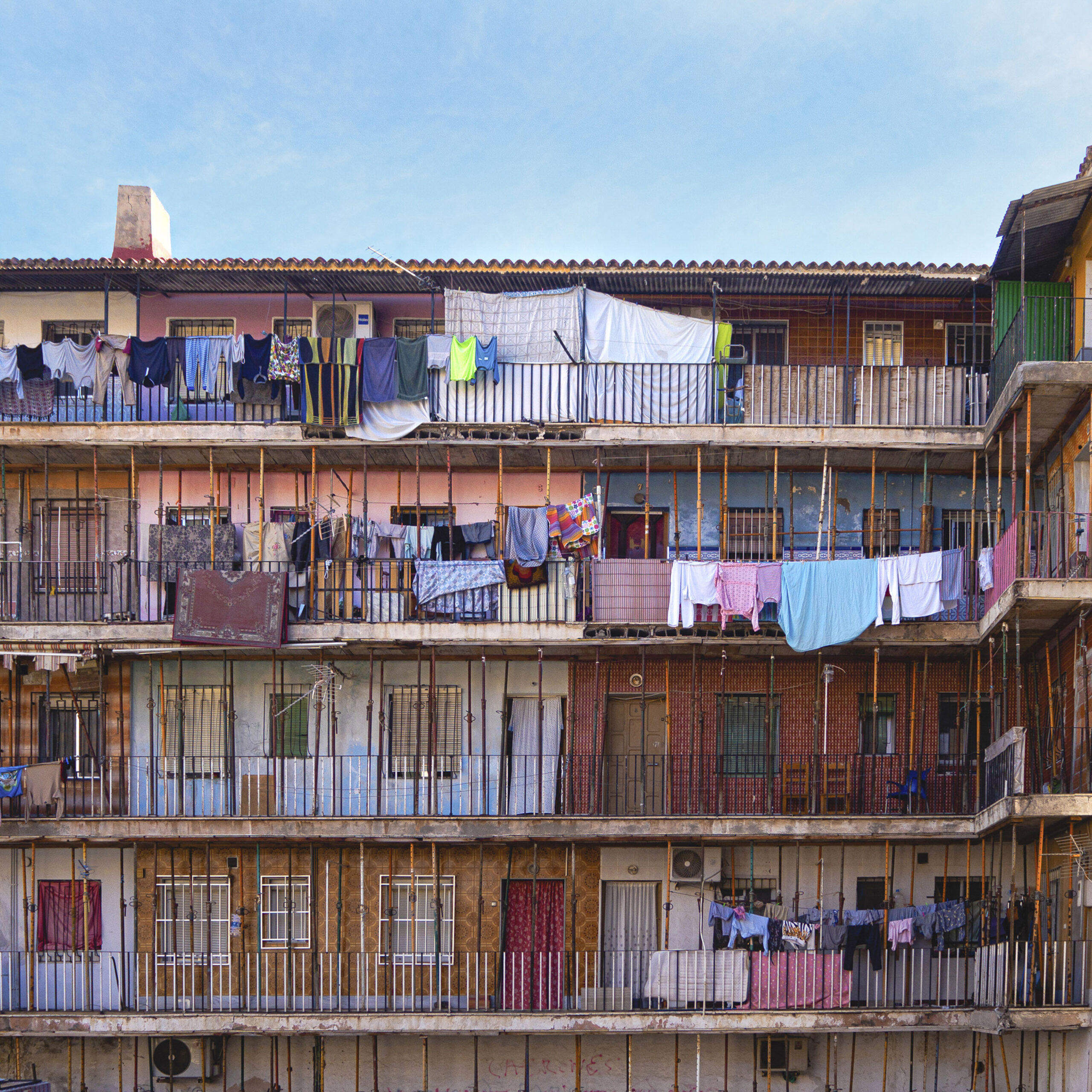 La obra documenta el barrio de Pescadería en Almería, antes obrero y ahora deteriorado, centrándose en el Edificio “El Patio”, donde más de 200 familias viven en riesgo sostenidas por miles de puntales que sostienen la estructura.