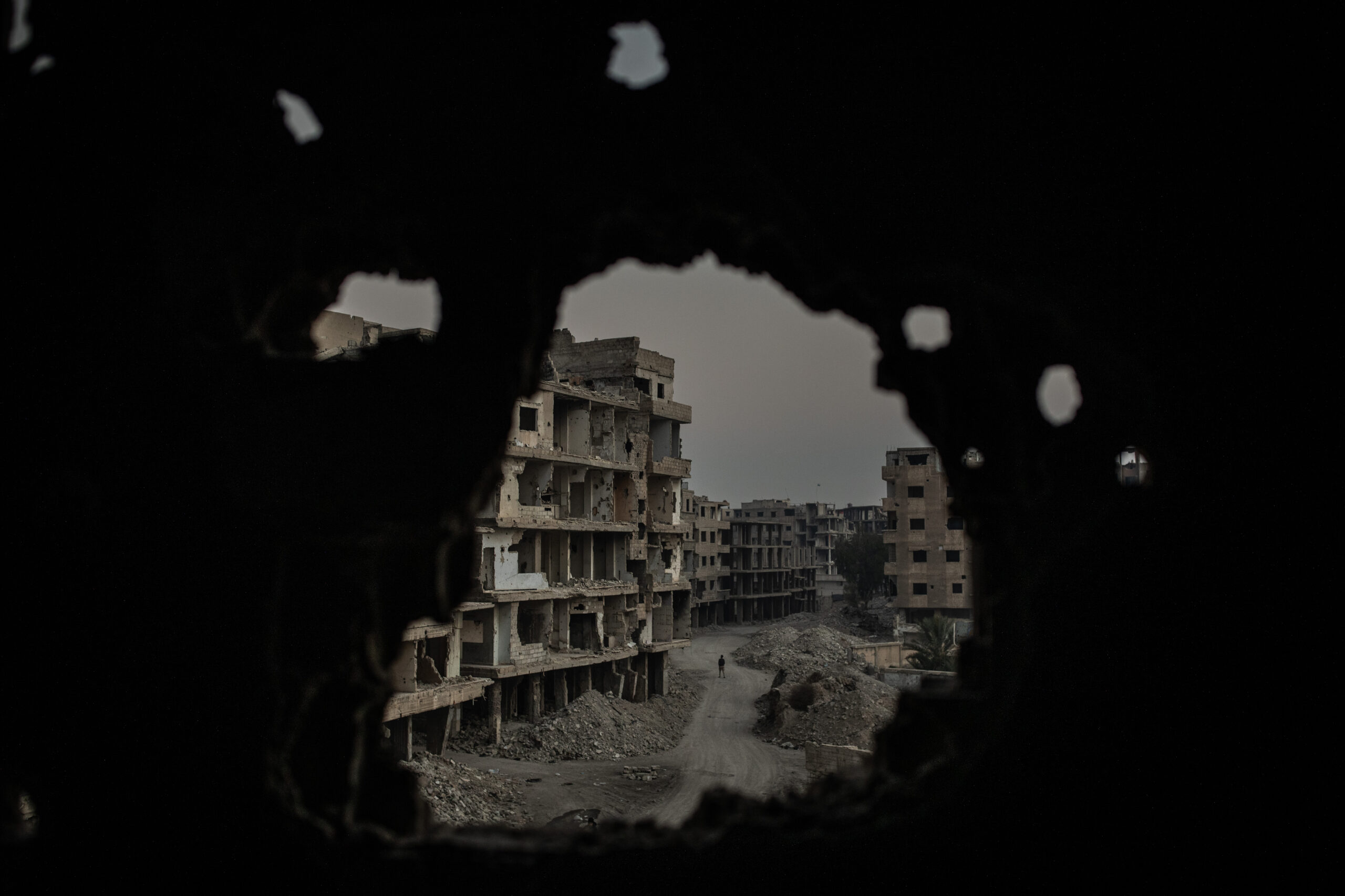 El Estado Islámico acabó tomando el control de Yarmouk y los bombardeos, combates y el cerco del ejército sirio destruyeron edificios, calles y espacios comunitarios. Lo que antes era un hogar se convirtió en ruinas. El saqueo sistemático por parte de las autoridades después de recuperar el control de sus calles en 2018, cuando los últimos vecinos que quedaban allí fueron expulsados junto a los últimos combatientes, terminó por borrar cualquier rastro de normalidad: casas sin puertas ni ventanas, sin muebles, sin electricidad, sin agua ni calefacción. Las calles vacías se convirtieron en testigos silenciosos de la devastación de toda una vida comunitaria.