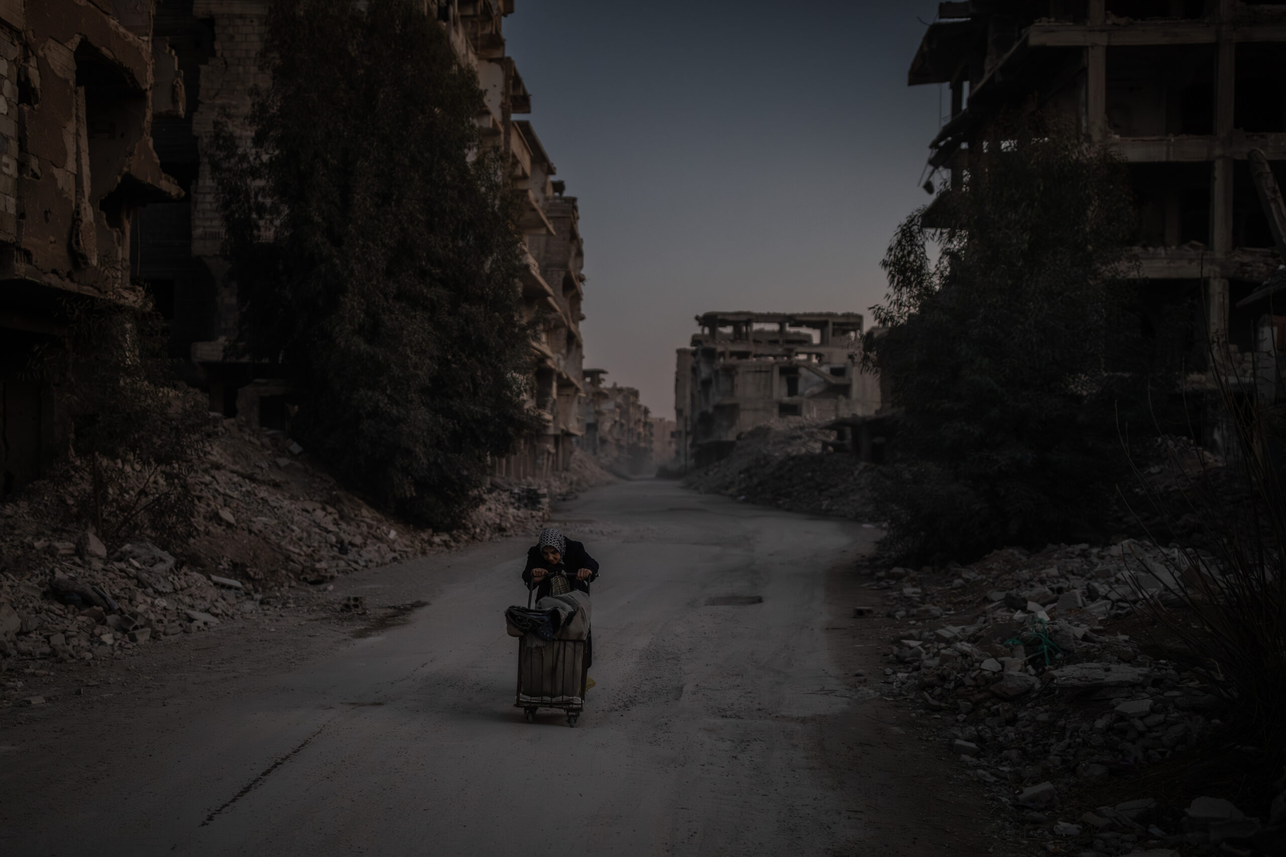 Este trabajo fotográfico busca documentar la vida de quienes regresan a Yarmouk: palestinos y sirios que sufren las consecuencias de la guerra, dibujadas en forma de falta de recursos y exclusión.